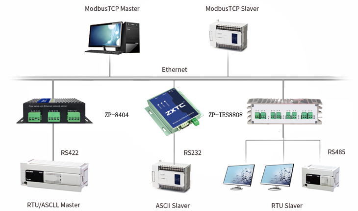ZP-8621专为整合Modbus RTU/ASCII和Modbus TCP网络设计Modbus网关,它可以实现Modbus RTU/ASCII与Modbus TCP协议之间的转换。支持1路RS-232/485和1路百兆以太网电口,采用导轨安装方式,能满足不同应用现场的需求。