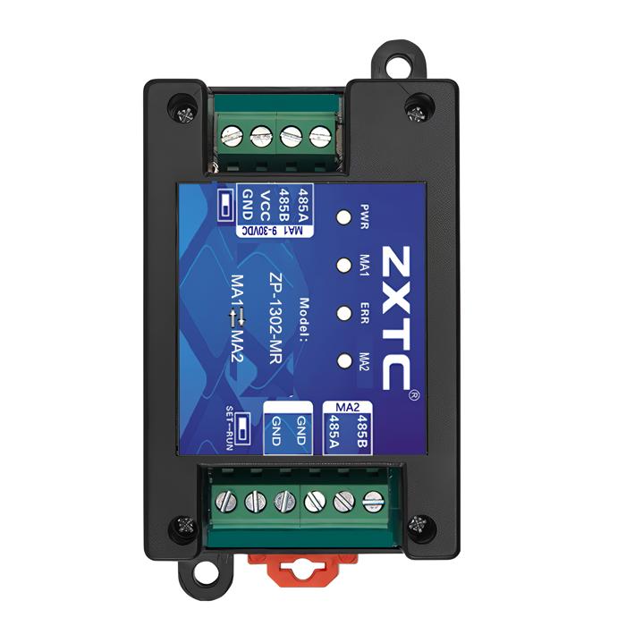 ZP-1302-MR是两个RS485主站与主站之间的读写控制通讯设备,主要解决在RS485(Modbus-RTU)总线不能同时存在两个主站,并且主站和主站之间数据不能互相读写交互通讯。本产品能很好解决Master-1主站向模块写入数据,Master-2主站读取数据;Master-2主站向模块写入数据,Master-1主站读取数据。由此解决两个主站之间的通讯难题。