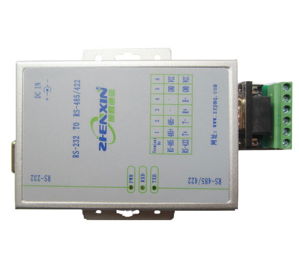 ZP-503光电隔离型接口转换器、兼容RS-232C、RS-422、RS-485标准,能够将单端的RS-232信号转换为平衡差分的RS-422或RS-485信号,内置的光电隔离器,能够提供高达2500Vrms的隔离电压,带有快速的瞬态电压抑制保护器及放电管,此保护器被设计用来保护RS-422/RS-485接口,采用当今先进的TVS(TRANSIENT VOLTAGE SUPPRESSOR)瞬态电压抑制器及放电管,正常情况下TVS管及放电管呈高阻状态,当TVS管及放电管两端经受瞬间的高能量冲击时,它能以极高的速度将其两端的阻抗降低,吸收一个大电流,从而把其两端的电压钳制在一个预定的数值上,保护后面的电路元件不因瞬态高压冲击而损坏。此保护器可以有效地抑制闪电(LIGHTNING)和ESD,提供每线1500W的雷击浪涌保护功率,以及各种原因在线路上产生的浪涌电压和瞬态过压,并且极小的极间电容保证了RS-422/RS-485接口的高速传输。 RS-232接口端通过一个DB9母头的连接器与兼容RS-232C标准接口相连,RS-422、RS-485端通过RJ-45及DB9公头的连接器连接。转换器内部带有零延时自动收发转换,独有的I/O电路自动控制数据流方向,而不需任何握手信号(如RTS、DTR等),无需跳线设置实现全双工(RS-422) 、半双 工(RS-485)模式转换,即插即用。确保适合一切现有的通信软件和接口硬件,不需要对以前的基于RS-232的工作方式作任何软件的修改。